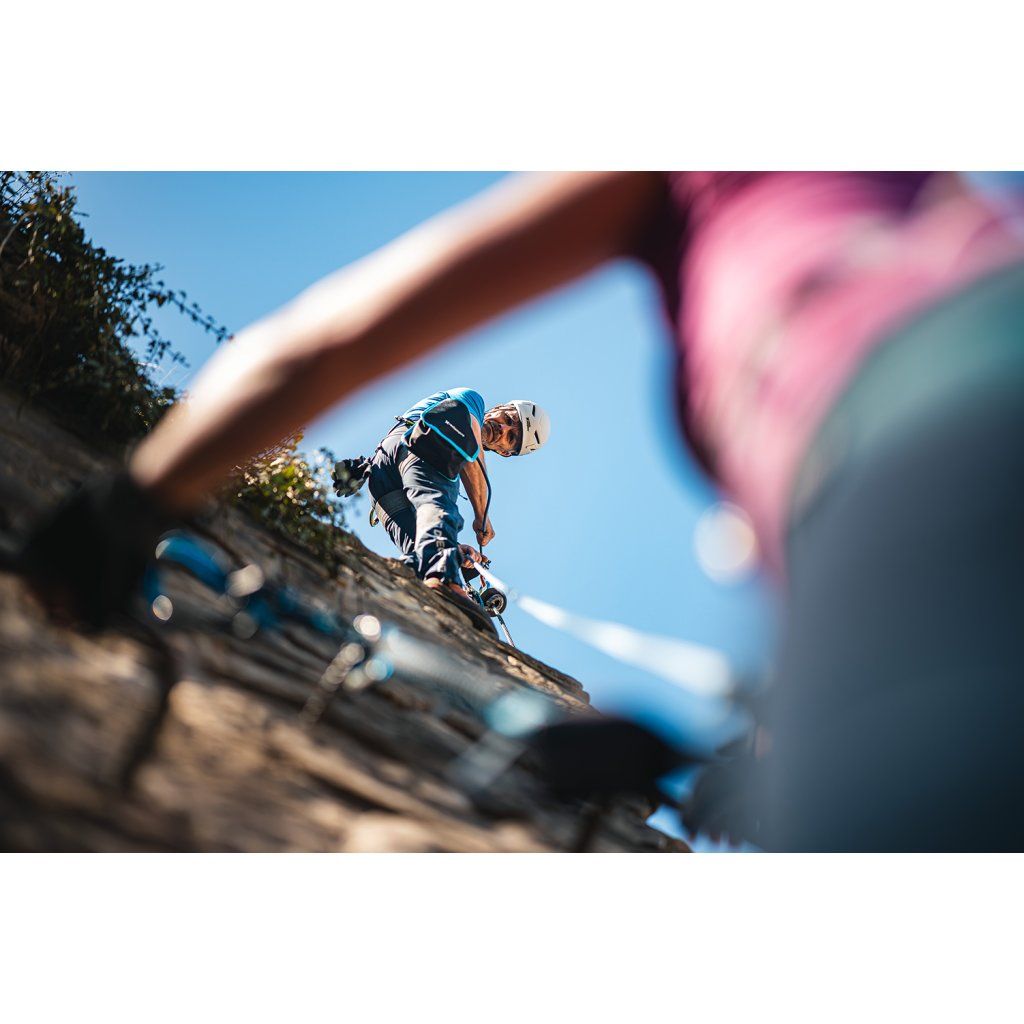 The BE-SAFE belay set is a reliable and technically sophisticated solution for belaying beginners on via ferrata routes.