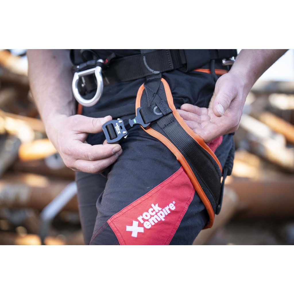 The lower connection point (EN 813) is also equipped with small loops for connecting a work bench and an internal loop for attaching a chest ascender. Thanks to these details, VELOX is one of the best-equipped work harnesses on the market.