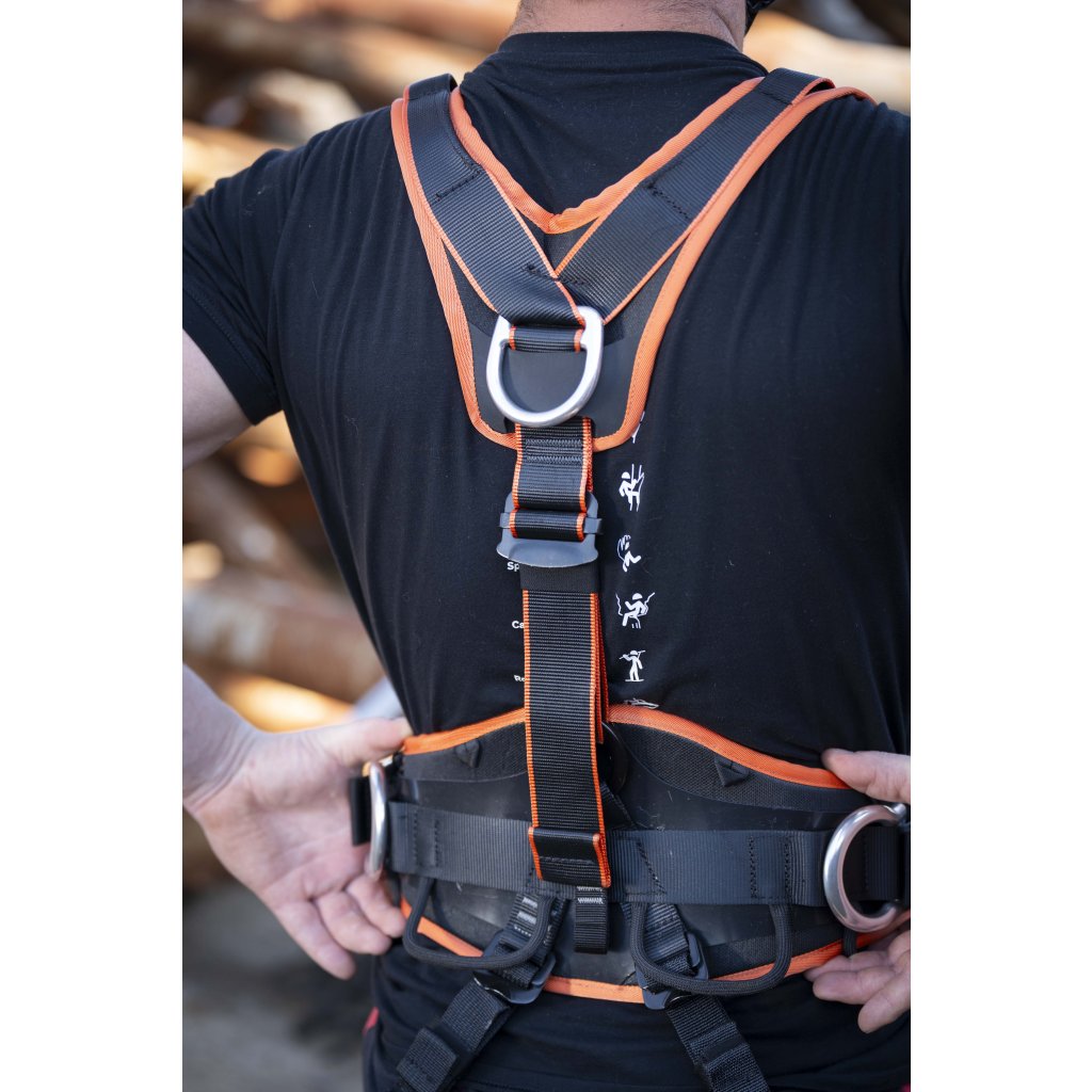 Reinforced padding in the lumbar area provides significant support even during longer periods of work in suspension or positioning.
